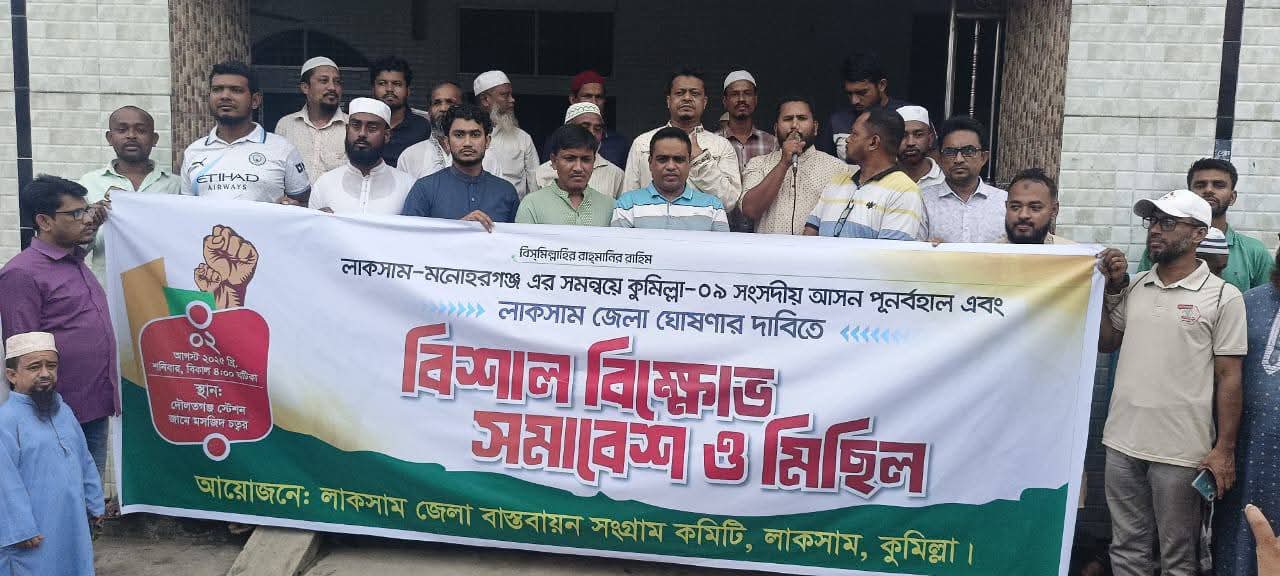 কুমিল্লা-৯ (লাকসাম-মনোহরগঞ্জ) আসন পুনর্বহালের দাবিতে লাকসামে বিক্ষোভ মিছিল অনুষ্ঠিত হয়েছে।